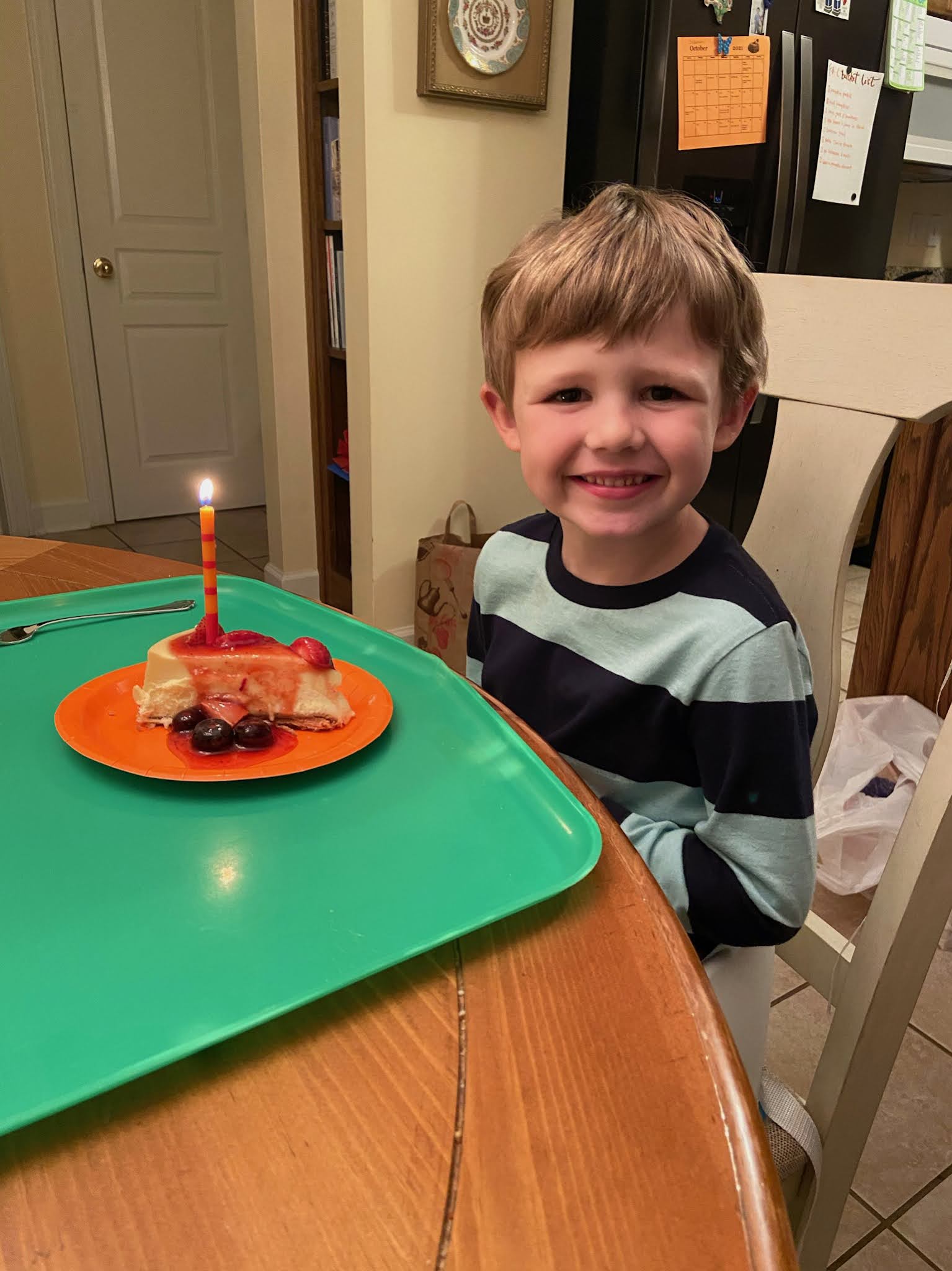 Henry requested hot dogs and macaroni and cheese for dinner, so that's what we had, followed by cheesecake with fruit. It was the best way to end a fun-filled birthday weekend!